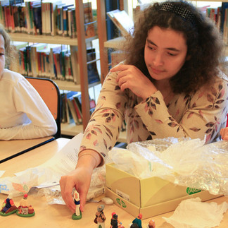 Après avoir appris l'origine du mot, la naissance du métier de santonnier et la fabrication du santon, les écoliers ont ainsi pu découvrir le potier, la fileuse, le garde champêtre, le tambourinaire, le remouleur... et l'origine du parking des Bugadières : à Villeneuve Loubet, les lavandières...que l'on appelait également les bugadières lavaient leur linge avec des cendres ou du savon de Marseille sur les bords du Loup, sous le pont du village.