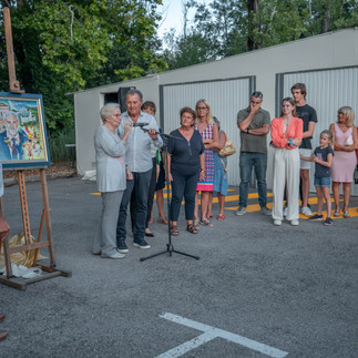 Après avoir dévoilé la nouvelle entrée du parc des sports et la plaque biographique, Jean-Luc Marès, artiste peintre et proche ami de la famille a remis un portrait de Jean-CLaude Dissane à son épouse, dont une reproduction sera installée sur le site.